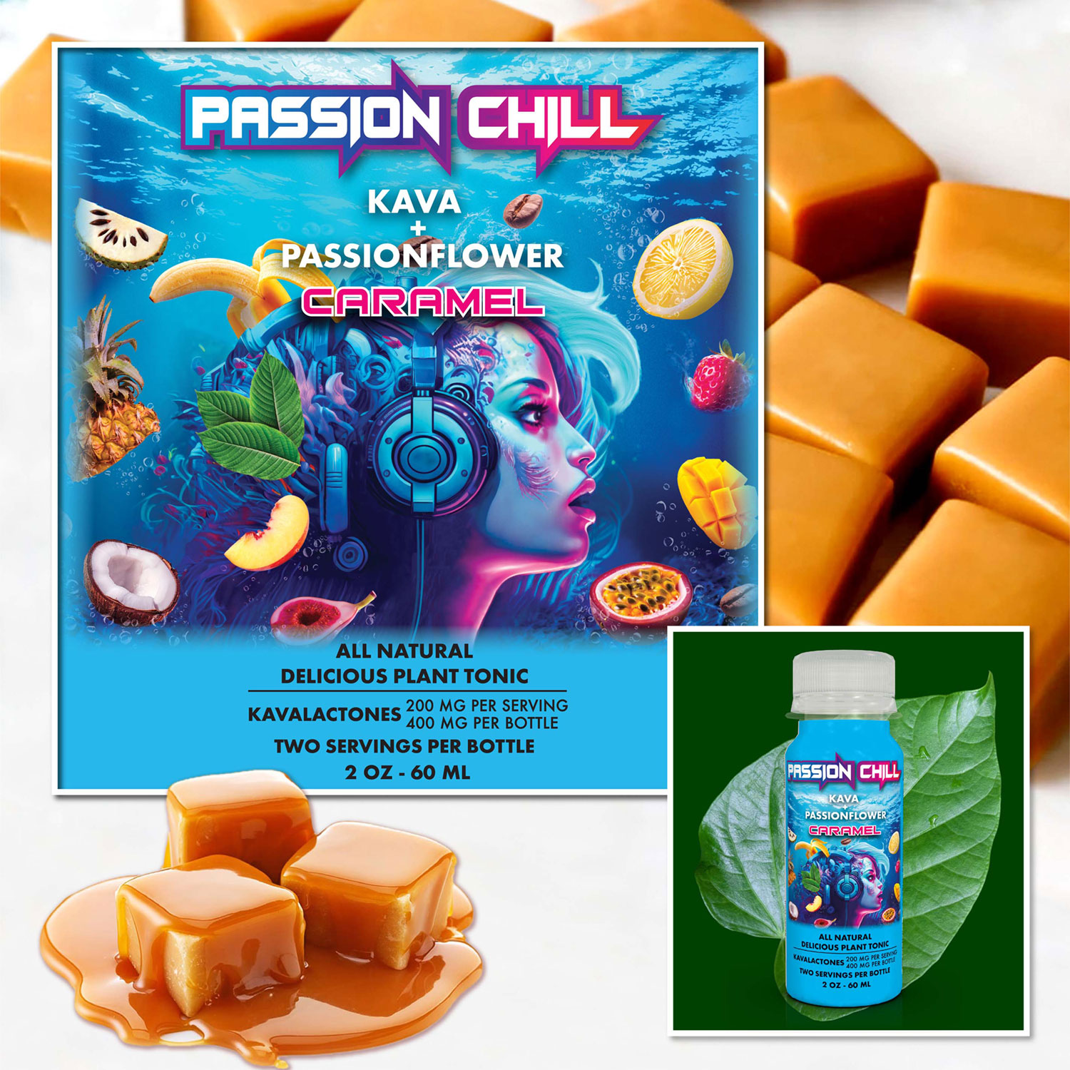 Passion Chill. 400 mg kavalactones. Caramel Flavor