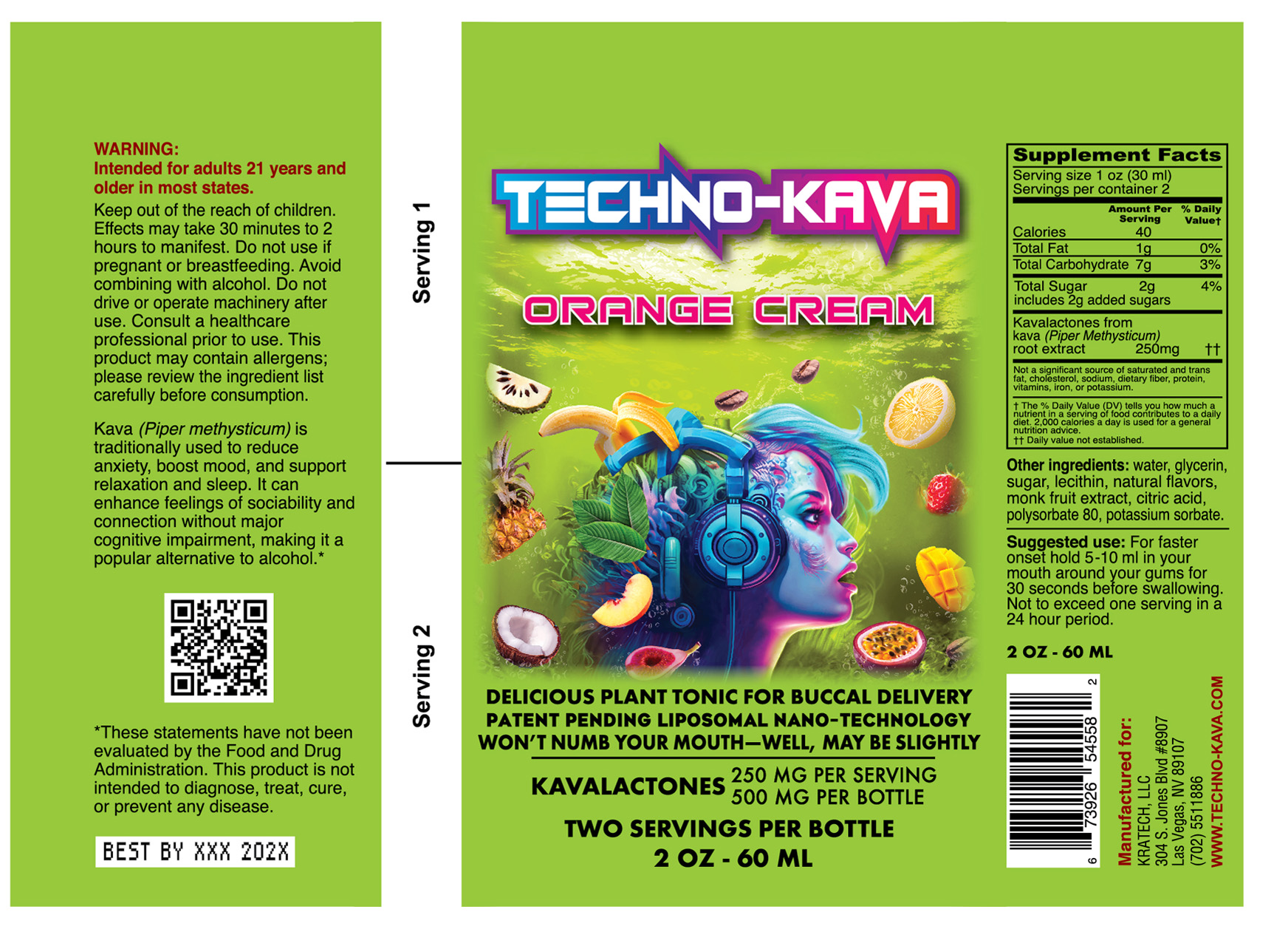 Techno-Kava. 500 mg kavalactones. Orange Cream Flavor